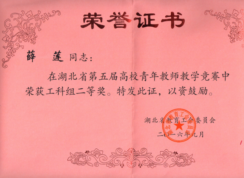 薛莲老师荣获湖北省第五届高校青年教师教学竞赛二等奖