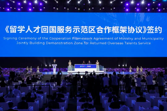 深入贯彻落实中央人才工作会议精神,全方位培养、引进、用好人才,加快建设北京高水平人才高地,在中心的大力推动下,教育部与北京市于8月26日正式签署《留学人才回国服务示范区合作框架协议》,教育部党组成员、副部长翁铁慧,北京市委常委、教育工委书记夏林茂在北京HICOOL2022全球创业者峰会开幕式上代表双方签署协议,并为“留学人才回国服务示范区”揭牌。中共中央政治局委员、北京市委书记蔡奇,教育部党组书记、部长怀进鹏出席开幕式并见证签约。