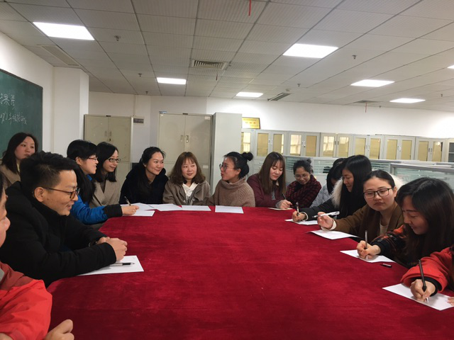 图为会计学专职教师集体备课《基础会计》,就教学方法研讨