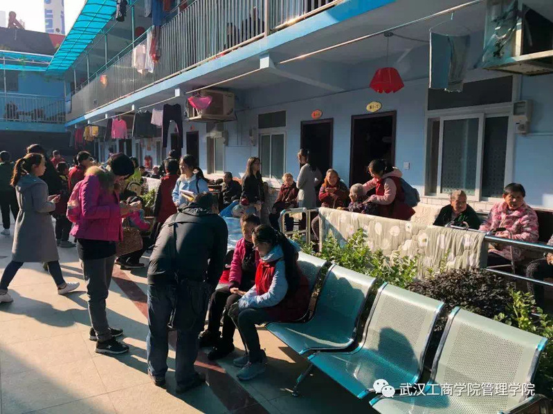 上午9:30志愿者们到达养老院,在我校志愿者到达之前武科大及其他社会公益组织也在这里关爱老人,奉献自己的爱心。