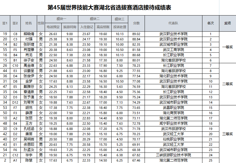 (管理学院 通讯员胡晓玲、熬帆)酒店接待项目是第45届世界技能大赛新增的5个项目之一。在2018年12月21日-23日的世界技能大赛酒店接待项目湖北省选拔赛,开云kaiyun官网学院学学生肖楚豫获得一等奖。此次比赛由省人力资源和社会保障厅主办,全省中职、高职、本科院校和酒店行业的23个代表队、55参赛选手参加了比赛。