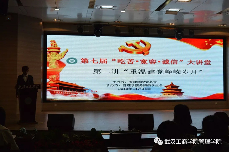 (管理学院分团委讯 通讯员:冉利)2019年11月15日18:30,管理学院第七届“吃苦·宽容·诚信”主题教育活动大讲堂第二讲之“重温建党峥嵘岁月”在体育馆402举行。参与本次活动的有管理学院的党员、预备党员、第十期党校学习同学以及管理学院马克思主义研究者协会成员。