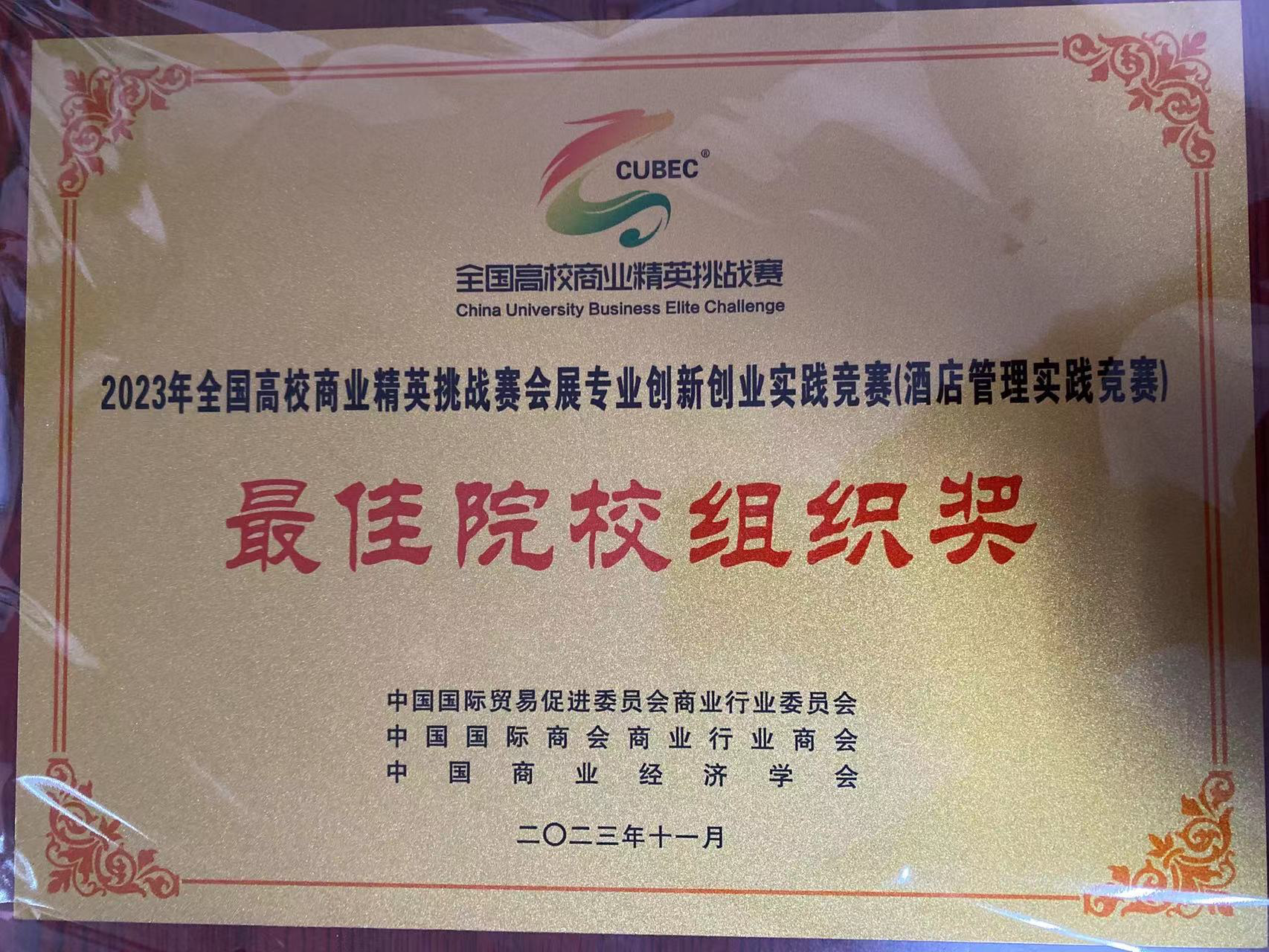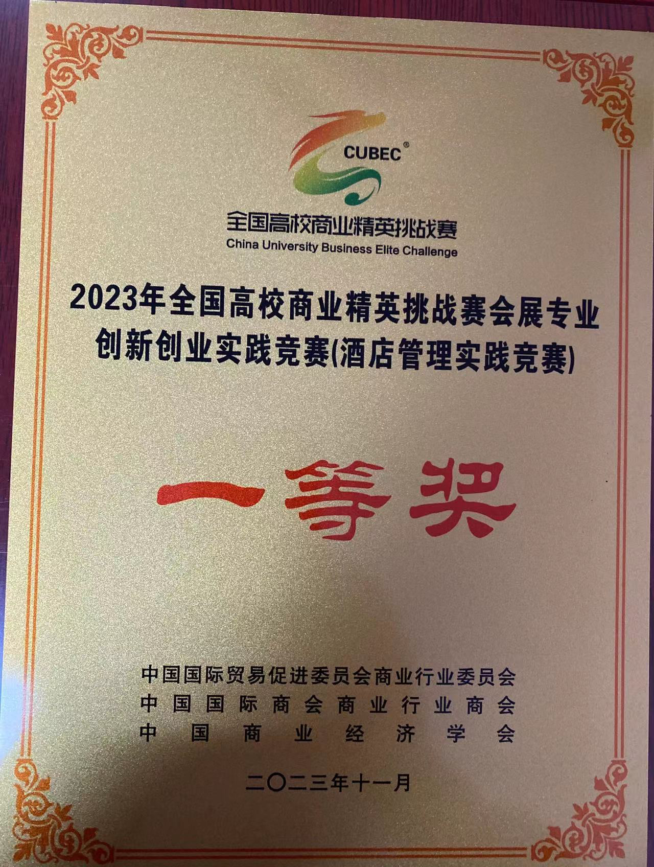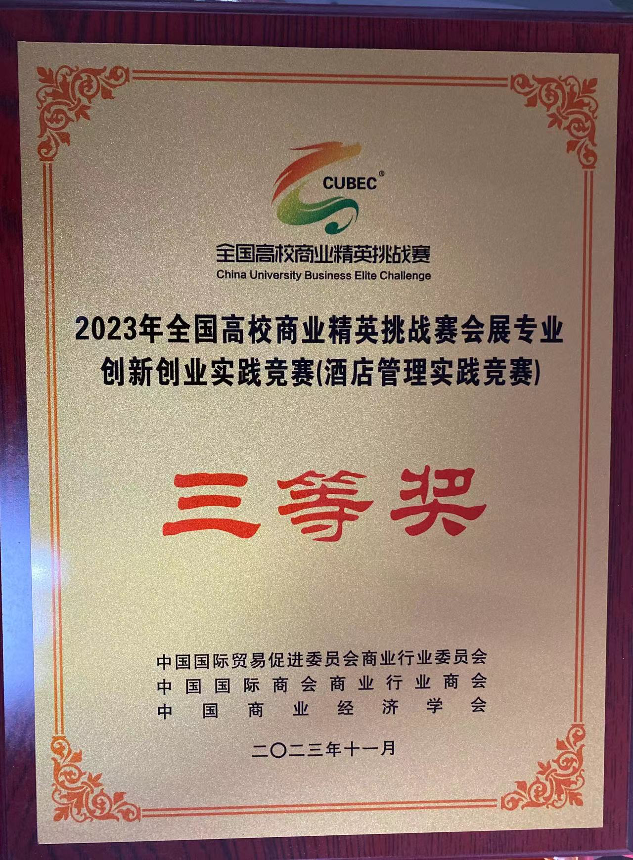 由中国国际贸易促进委员会商业行业委员会、中国国际商会商业行业商会和中国商业经济学会联合主办的 2023 年 (新加坡)国际商务会展策划大赛中国地区选拔赛暨第十七 届全国高校商业精英挑战赛会展创新创业实践竞赛全国总 决赛酒店竞赛,于 2023 年 11 月 18 日圆满举办。