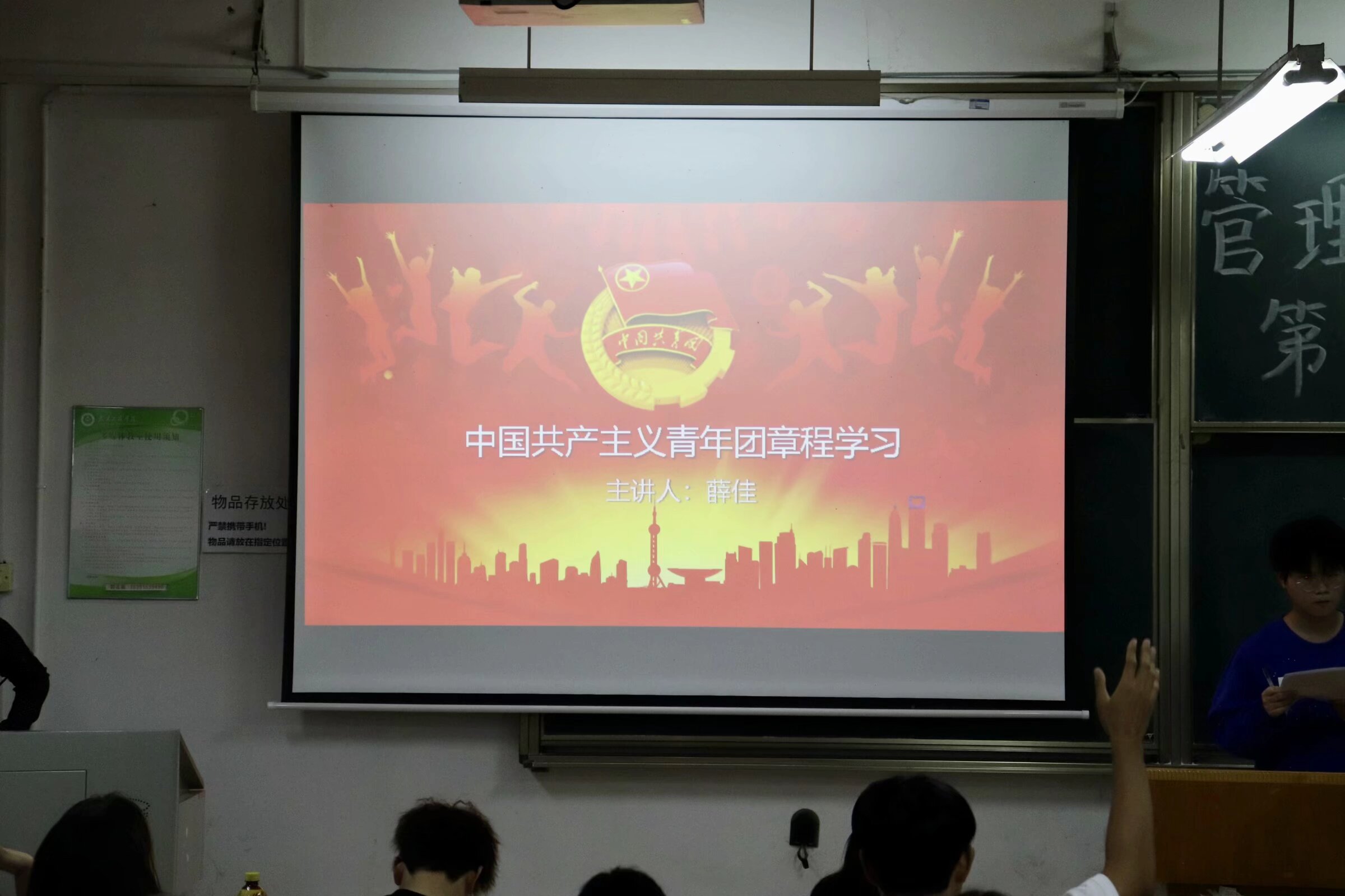薛佳老师将本次团课分为3个小节,分别是团章概述,团章总则和今年学生如何学习和遵守团章。老师在团课开始介绍了本次堂课的学习目标是认真学习团章,严格遵守团章。