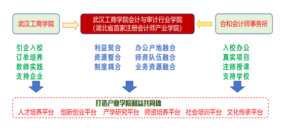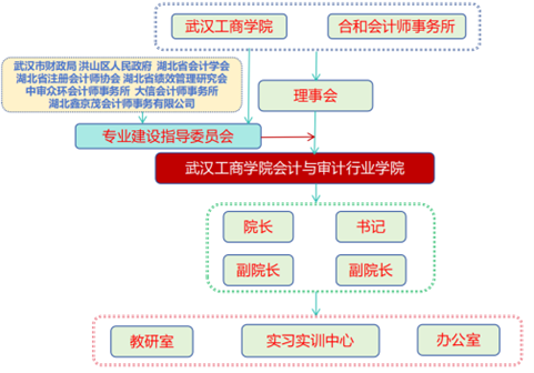 合和会计师事务所2023年营业收入超过4500万元,是2023年度湖北省会计师事务所综合信息评价排行榜本土所第二名。共建方还有武汉市财政局、洪山区人民政府、湖北省会计学会、湖北省注册会计师协会以及中审众环、大信等大型会计师事务所。共建单位共同组建专业建设指导委员会,成为会计产业学院建设的智库。理事会、专业建设指导委员会以及院务会等组织结构,是协同育人体系的组织保障。