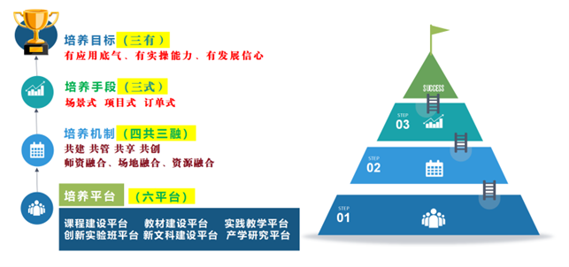学院构建“三合三融”新型校企合作模式,打造“三合”利益共同体,校企“三融合”,定向培养和双导师制相结合。