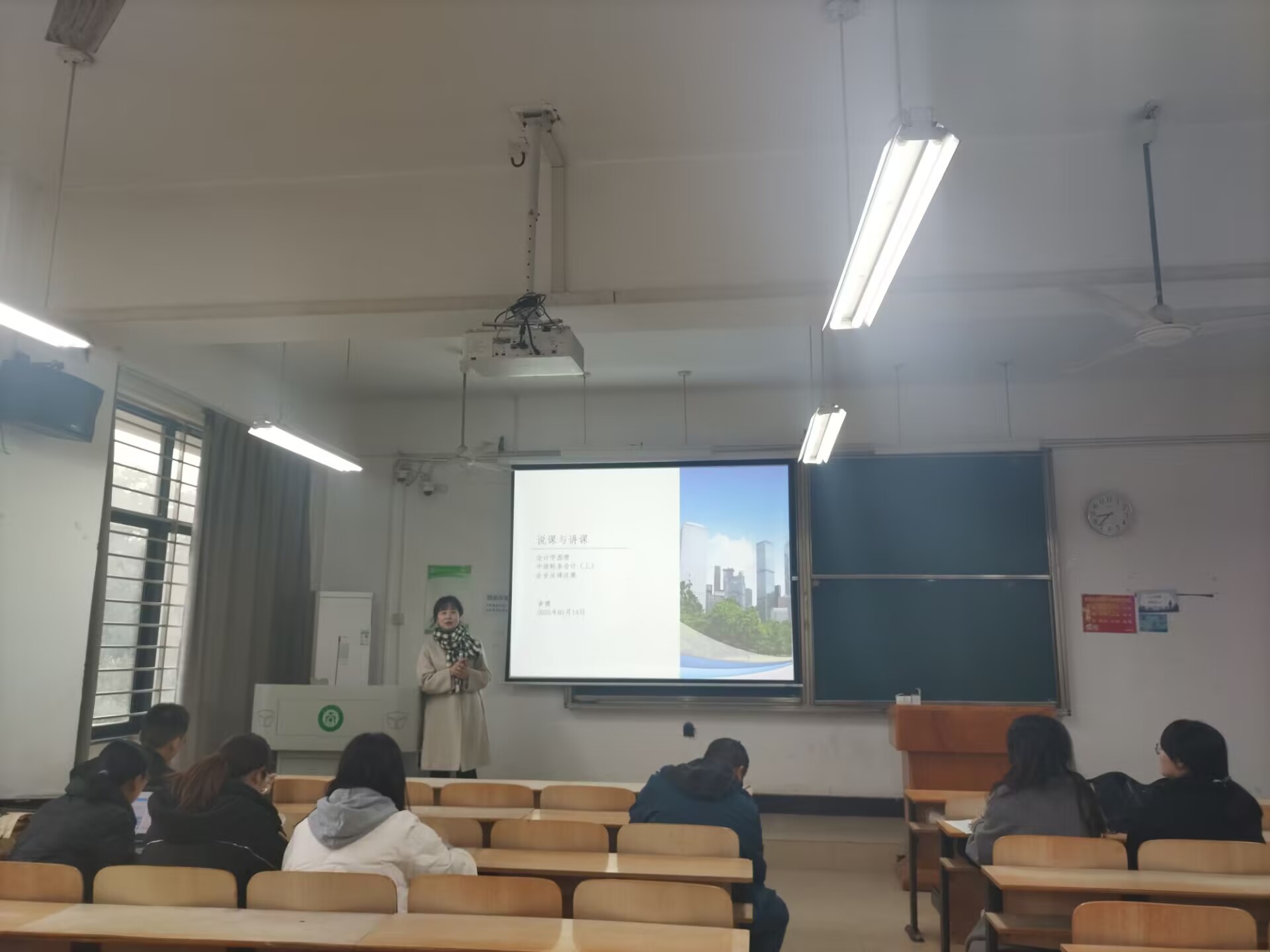除1名新教师休假外,33名教师参加了磨课。磨课活动由管理学院常务副院长聂新田牵头,各系主任和教学骨干担任评委老师。新进教师按分组依次进行了试讲,评委老师对课程目标、授课方法、课件制作、课程思政等进行了指导。
