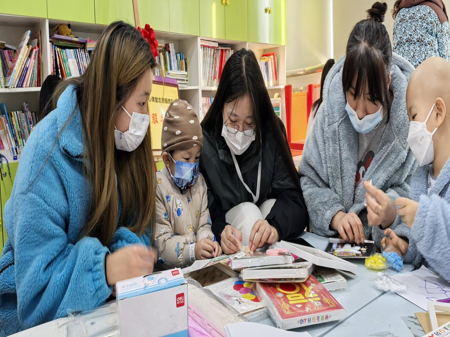 手工小课堂上,志愿者耐心地教孩子们用毛毡画做出一幅幅美丽的画面,孩子们专注地摆弄着手中的小毛团,一只只形态各异的毛毡画在他们手中诞生,仿佛承载着他们对健康的渴望和对未来的憧憬。当轻柔的音乐响起,志愿者讲述着一个个生动的童话故事,孩子们安静地聆听,沉浸在美妙的故事世界里,暂时忘却了病痛的折磨。