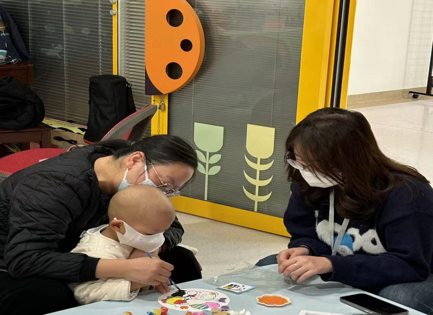 活动现场,志愿者们带来了DIY毛毡画和制作汤圆图画的小游戏。孩子们的脸上绽放出纯真的笑容,志愿者们还与孩子们一起玩起了"角色扮演"游戏,他们化身成童话故事中的角色,与小朋友们互动对话,将病房变成了一个充满奇幻色彩的童话世界。