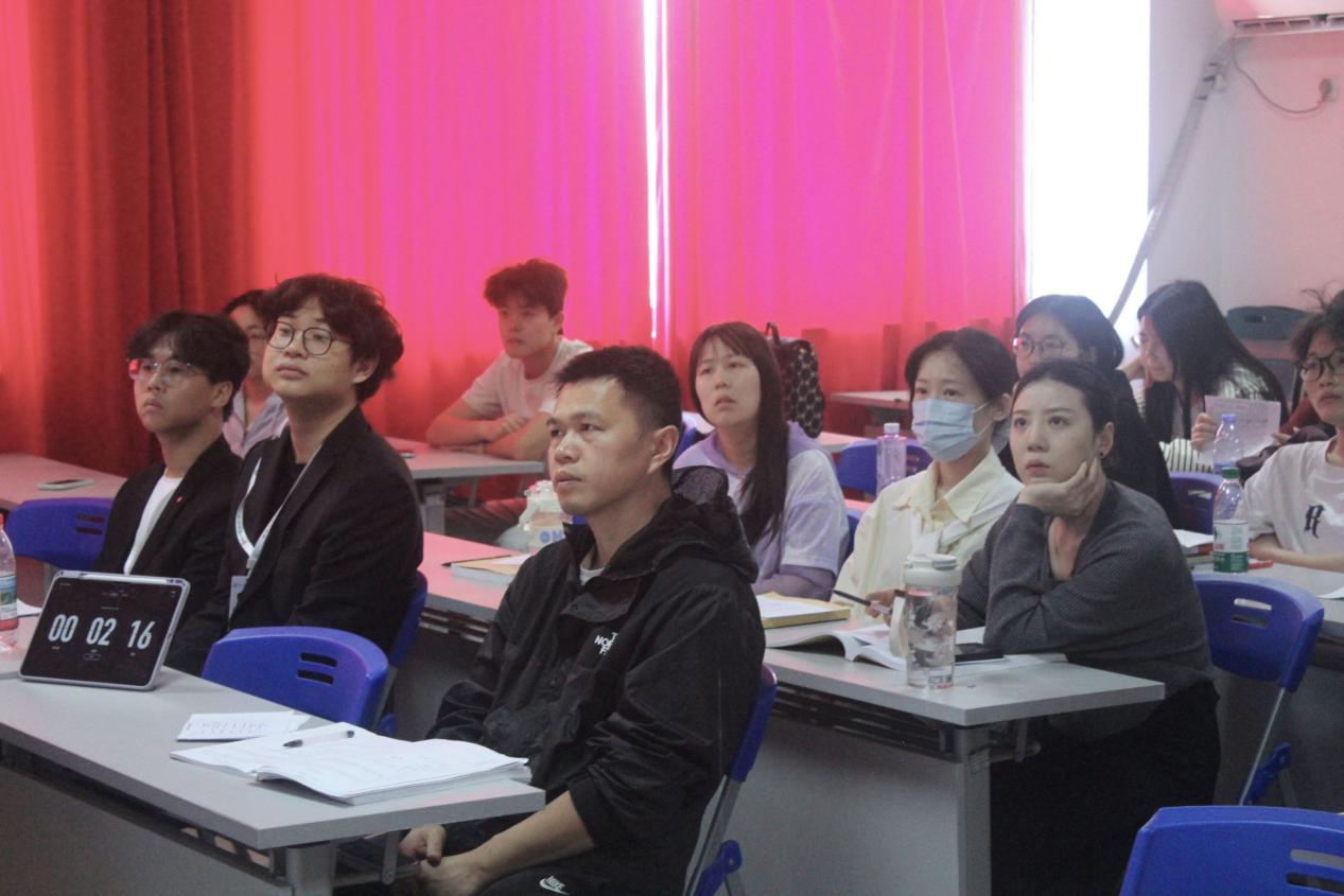 图为管理学院评委及学生代表听讲