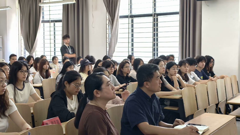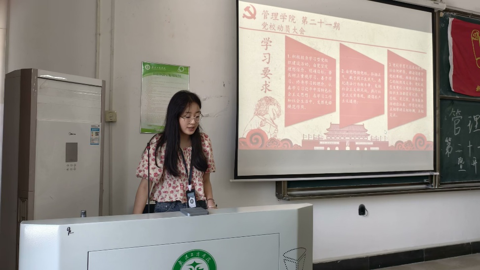 其次,党校负责人薛佳老师进行发言。她首先肯定了党课开班的重要意义,指出这是提升政治素养的关键平台。她要求学员深耕党的理论,把党章党史学深悟透;坚持知行合一,在服务同学中践行初心;严守学习纪律,以严谨态度完成课业。最后,她鼓励大家珍惜机会,以实际行动向党组织靠拢,早日成为有信仰、敢担当的先锋力量。