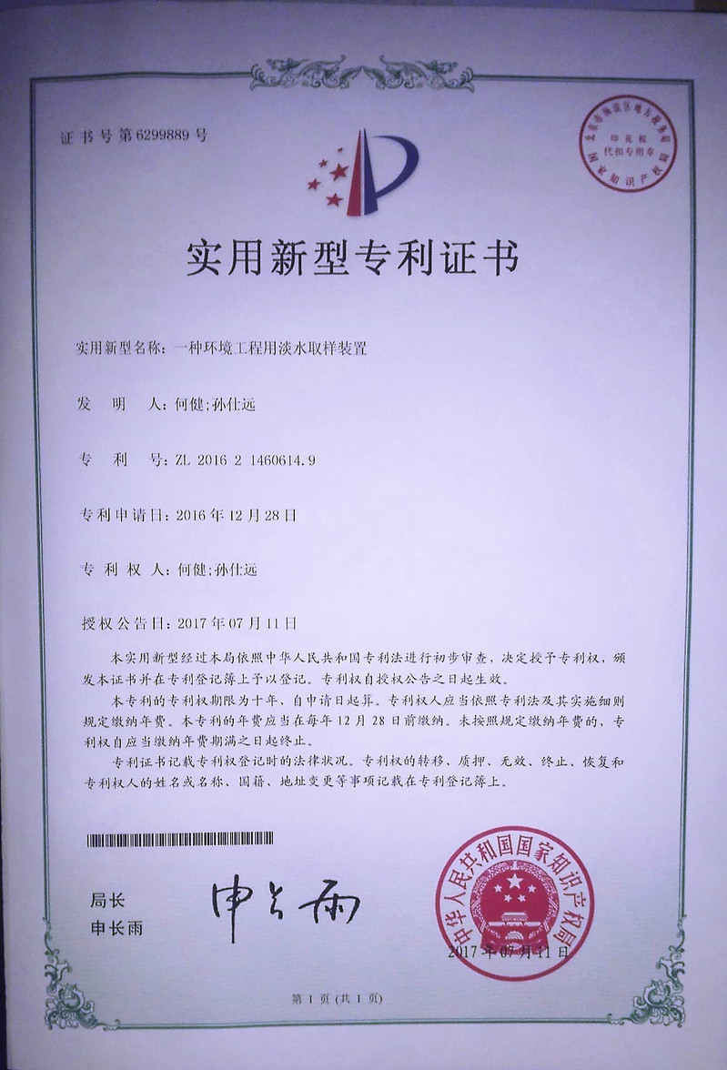 申请人: 何健 孙仕远(均为15级环境本2班学生)