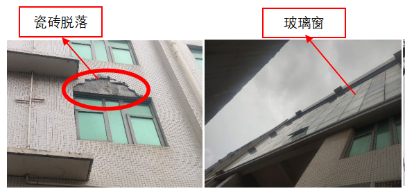 工程训练中心办公楼瓷砖、玻璃掉落