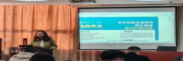 国际合作交流部部长孔少敏就中外校际交流项目进行了系统的宣讲。她首先明确了中外校际交流项目专业的内涵及与一般专业的区别。她还详细介绍了中外校际交流项目专业的核心工作内容、项目优势、费用结构以及留学途径等相关问题,希望全体招生人员能在后期的招生宣传中对中外校际交流项目能予以大力的宣传和推荐。