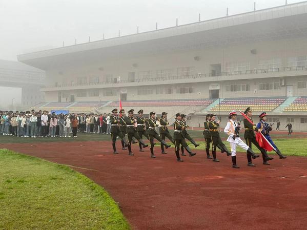 2024年4月15日上午7点,环生学院全体政工老师、23级全体学生、院学生会干部、学生党支部入党积极分子及学生(预备)党员共计400余人,参加了学校校团委组织的第八周升旗仪式。