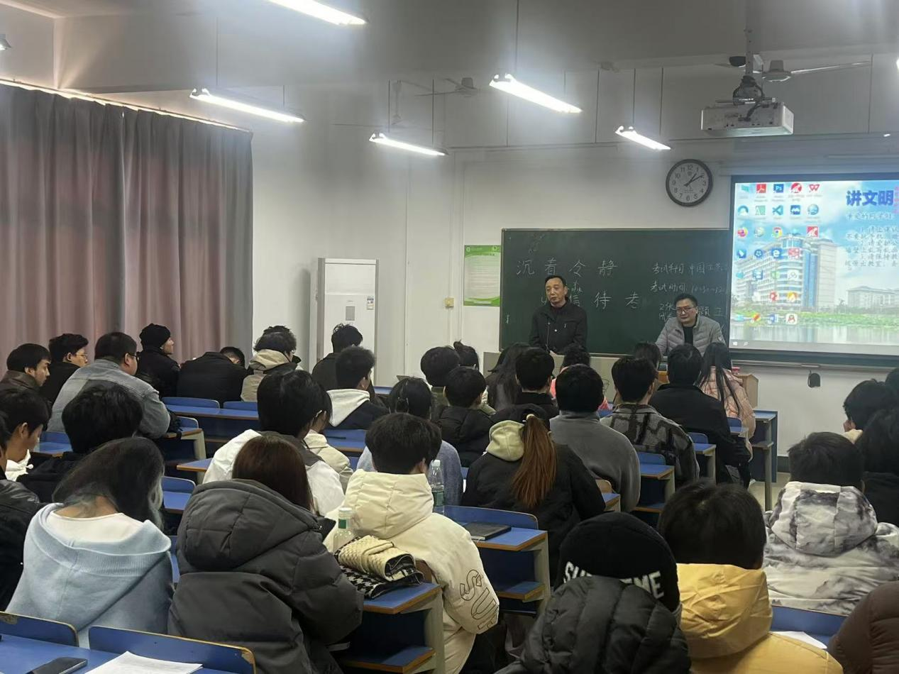 会上,王强副书记主要从三方面进行了强调:一是针对学校举办的就业培训,涉及到考研学生及实习未满六个月的学生要从思想上和行动上高度重视,力争圆满完成培训工作,为下学期顺利抵扣两个月的实习奠定基础;二是针对还未就业的学生要在此次论文开题与实习答辩结束后充分把握各类人才招聘市场,力争在下学期论文答辩前完成就业工作;三是寒假离校前,涉及到在校参加就业培训及开展论文写作及毕业设计等同学务必注意人身及财务安全。