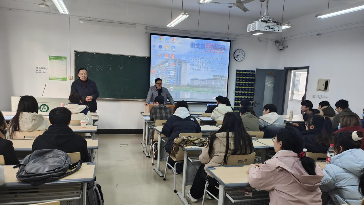 2025年1月6日上午,环生学院在外语楼418教室召开了针对2025届毕业生的论文开题与实习答辩暨就业再动员大会。出席会议的有环生学院常务副院长柯斌清及党总支副书记王强。