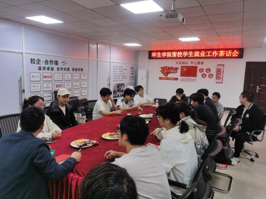 2025年10月28日中午,环生学院针对参与集中实习及备考英语四级的2026届留校毕业生召开就业工作茶话会。参加会议的有环生学院党总支副书记王强、2026届毕业生辅导员李杨及全体留校毕业生。