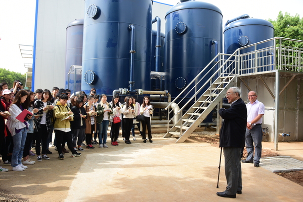 李圭白院士在汤逊湖污水处理厂给学生现场讲授污水处理知识