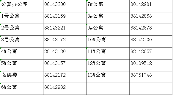 附 各楼栋服务电话