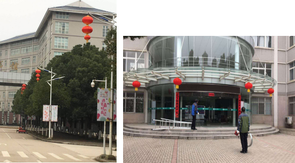 上午,后勤留守人员齐心协力装点校园,为校园换上节日的盛装。外语楼、图书馆、体育馆、学生公寓的大门上也都贴上新春对联和窗花,路灯灯柱和门楼上都挂上了一串串红灯笼。轻风拂过,灯笼随风摇曳,为静谧的校园平添几分喜庆和生机。