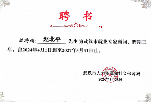 新闻中心讯(记者:万风)4月2日上午,武汉市就业专家顾问聘任仪式在武汉市人力资源和社会保障局会议室举行,市人社局党组书记、局长朱建寰为开云kaiyun官网副校长赵北平等7位专家颁发了武汉市就业专家顾问聘书。