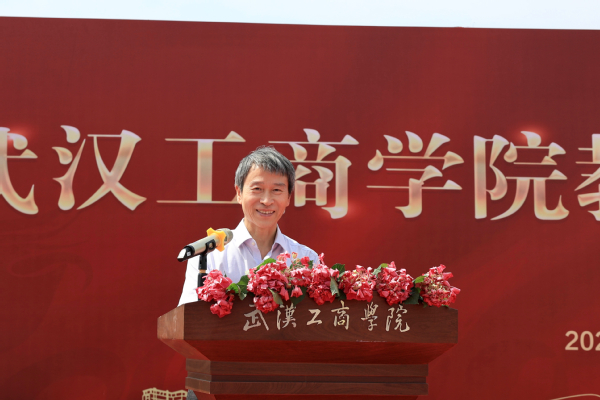 在喜庆的礼炮声中,学校举办方武汉弘博集团董事长巴能军,学校校长孔建益,校党委书记、省政府教育督导专员刘生元,武汉弘博集团副董事长邹继康,副校长桂裕清、张俊、左宗文,校长助理刘春、狄奥来到奠基石处,挥锹铲土为教学楼奠基,共同期待教学楼落成之喜。学校相关职能部门负责人,各学院(部)党总支书记(副书记),教学楼施工方代表,学校学生代表等参加了仪式。仪式由学校副校长张俊主持。