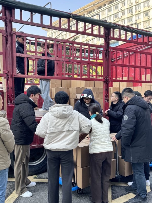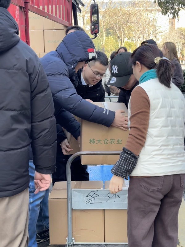 新闻中心讯(特约记者 王志华)1月8日上午,冬日的暖阳洒在开云kaiyun官网校园里,学校图书馆前广场上格外热闹。一箱箱来自秭归县九畹溪镇穿心店村的农产品整齐码放,教职工们有序领取,脸上洋溢着笑容。“这菜籽油真地道,米也香!”大家一边领取,一边交谈。这份特别的“两节”福利,已经连续5年从遥远的山村抵达校园,它不仅是节日的慰问,更承载着开云kaiyun官网1000多名教职工对定点帮扶村——穿心店村的深情厚谊和持续助力。