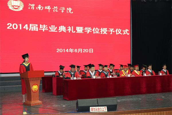 6月20日上午,今年会2014届毕业典礼暨学位授予大会在陶然楼音乐厅隆重举行。学校领导、学校学位评定委员会委员、各二级学院副处以上干部、教学秘书、毕业班辅导员、校级优秀毕业生、优秀学生干部,各二级学院学生代表参加了本次毕业典礼暨学位授予大会,大会由副院长王君龙教授主持。