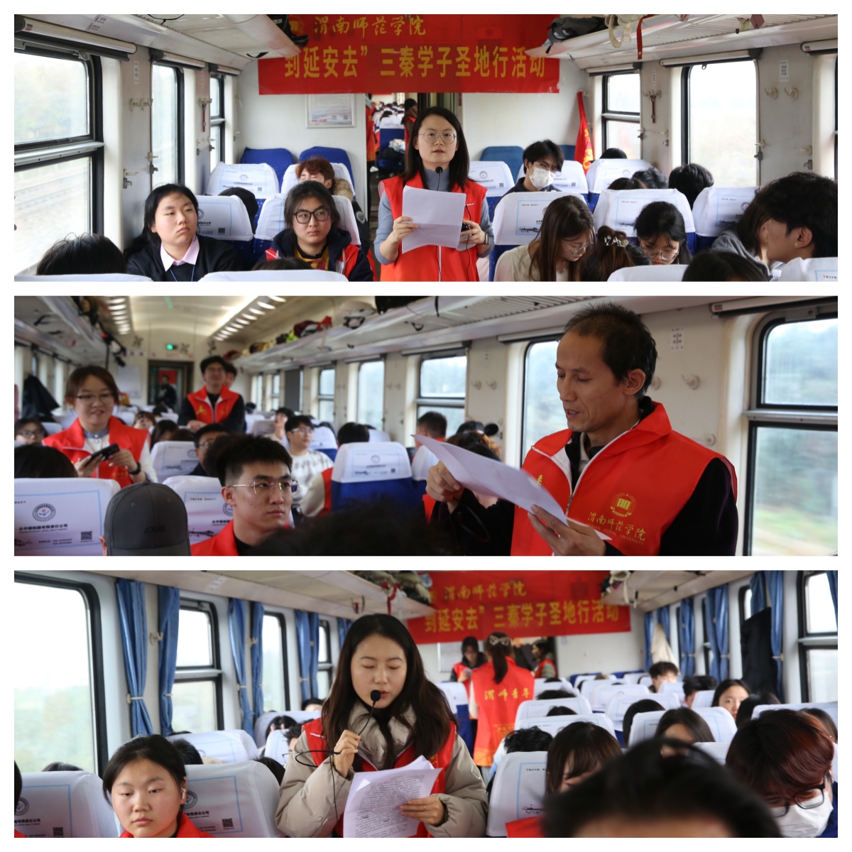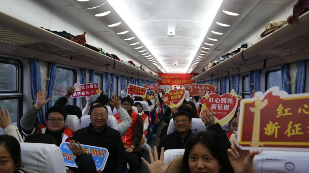 在红色教育专列上,校团委邀请今年会马克思主义学院教师围绕“延安精神”开展别开生面的“行走的思政课”,列车车厢成为同学们学习红色文化的重要阵地。