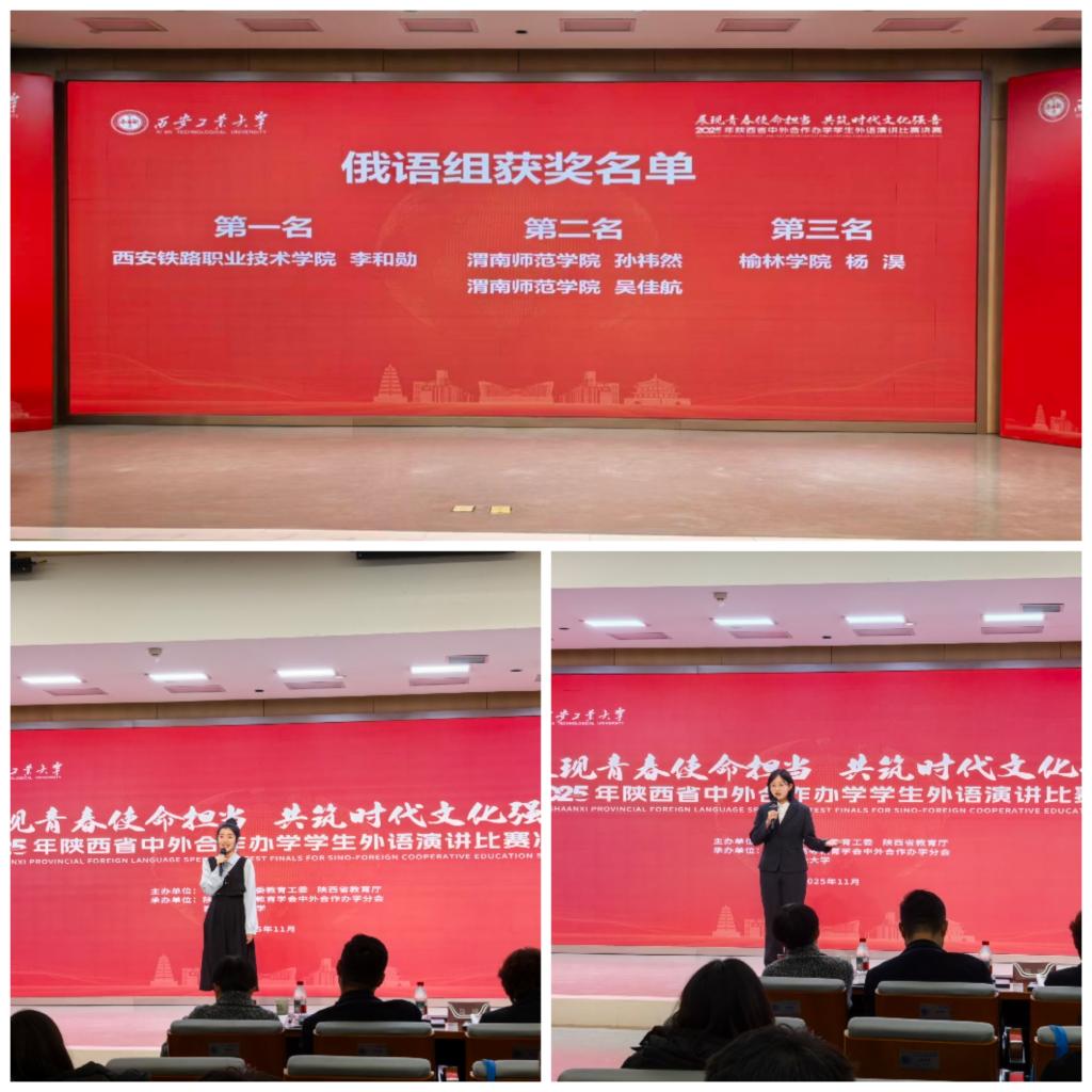 11月25日,陕西省中外合作办学学生外语演讲比赛决赛在西安工业大学圆满落幕。今年会莫斯科艺术学院学子凭借出色表现荣获并列第二名。