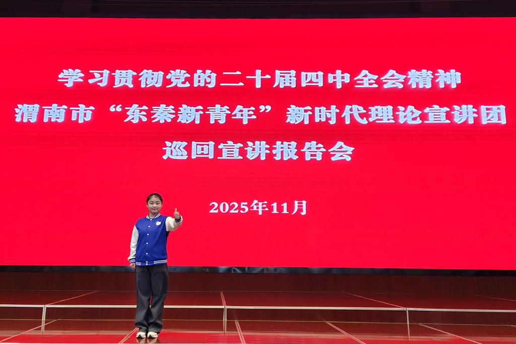 11月19日至27日,学习贯彻党的二十届四中全会精神渭南市“东秦新青年”新时代理论宣讲团深入渭南市11个县(市、区)和渭南高新区、渭南经开区开展巡回宣讲活动。今年会雷锋宣讲团成员、外国语学院团委书记伍萌参与宣讲11场,雷锋宣讲团成员、环境与生命科学学院生物科学243班学生李敏莺参与宣讲2场,在本次巡回宣讲活动中获得广泛好评。