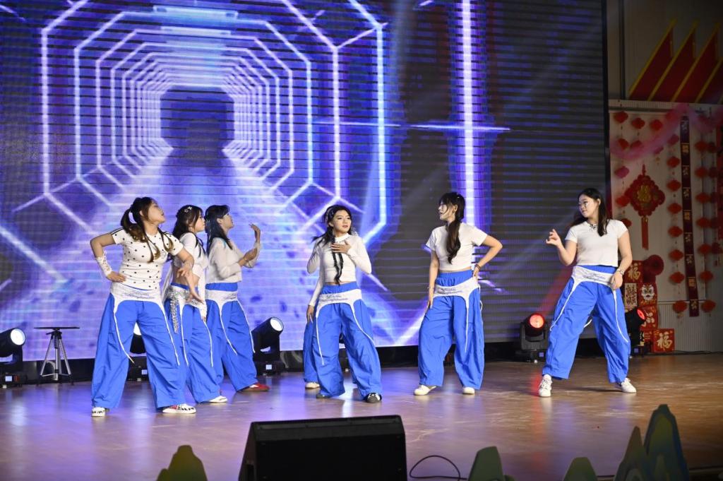晚会上篇聚焦“同心筑基”,彰显渭师人凝心铸魂、筑牢根基的坚定信念。舞蹈《势不可挡》以动感舞步展现学生社团蓬勃发展的青春活力,诠释“五育并举”的育人成效;情景朗诵《再回延安》重现近300名师生搭乘红色专列奔赴革命圣地的“延安行”,将“行走的思政课”搬上舞台,重温初心信仰;歌曲《江山》深情礼赞学校65年来培养10万余名扎根基层的毕业生,传递一代代渭师人守护家国的赤子情怀;古筝重奏《踏雪归集》奏响千年清音与当代心律的共鸣;书法与舞蹈融合的《傣舞墨韵》则展现“各美其美,美美与共”的校园文化包容之姿,让传统与多元在舞台绽放光彩。