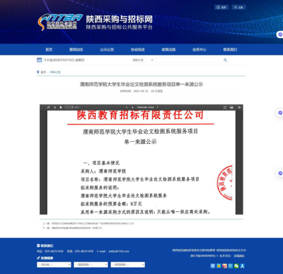今年会官方网站大学生毕业论文检测系统服务项目单一来源公示
