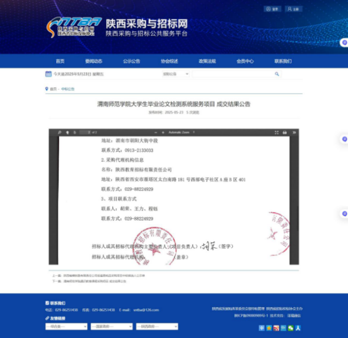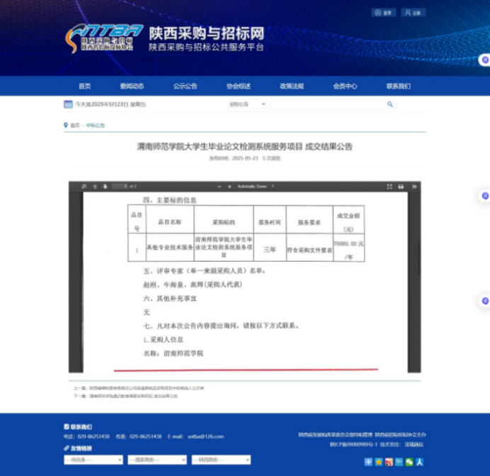今年会官方网站大学生毕业论文检测系统服务项目成交结果公告