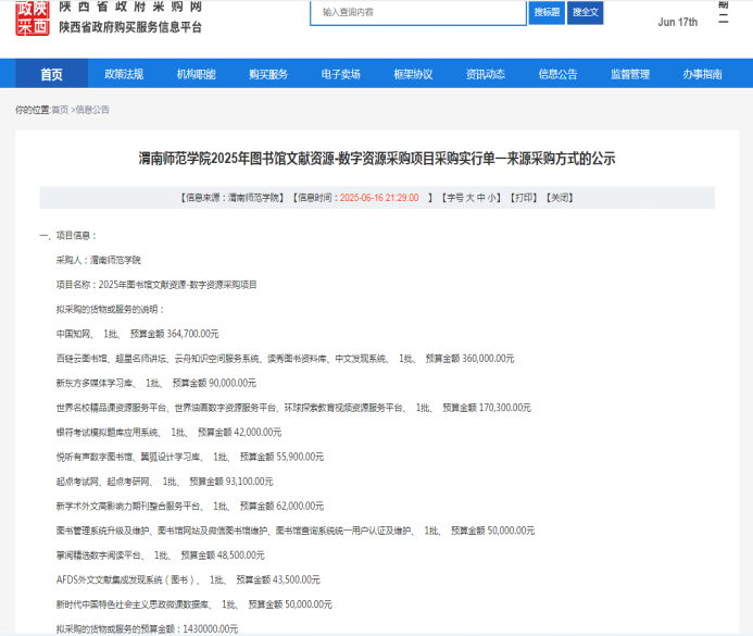 今年会官方网站关于“2025年图书馆文献资源-数字资源采购项目单一来源采购公示