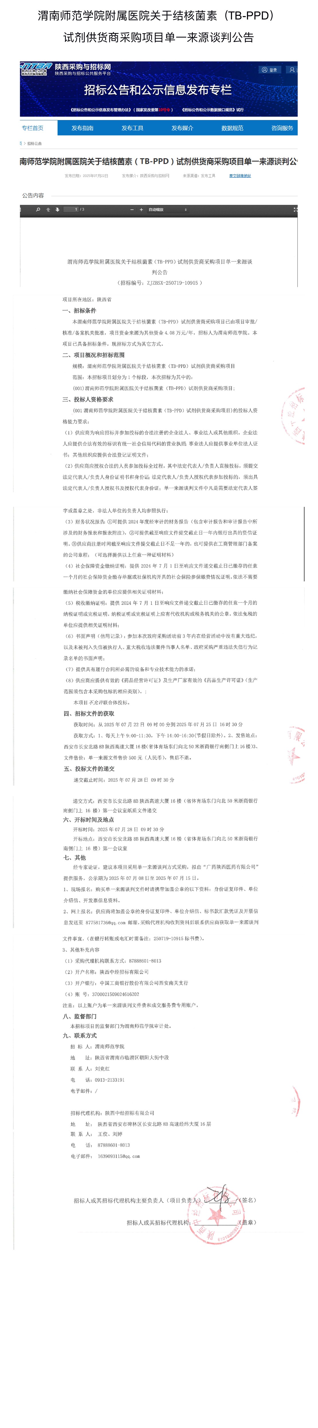 今年会官方网站附属医院关于结核菌素(TB-PPD) 试剂供货商采购项目单一来源谈判公告