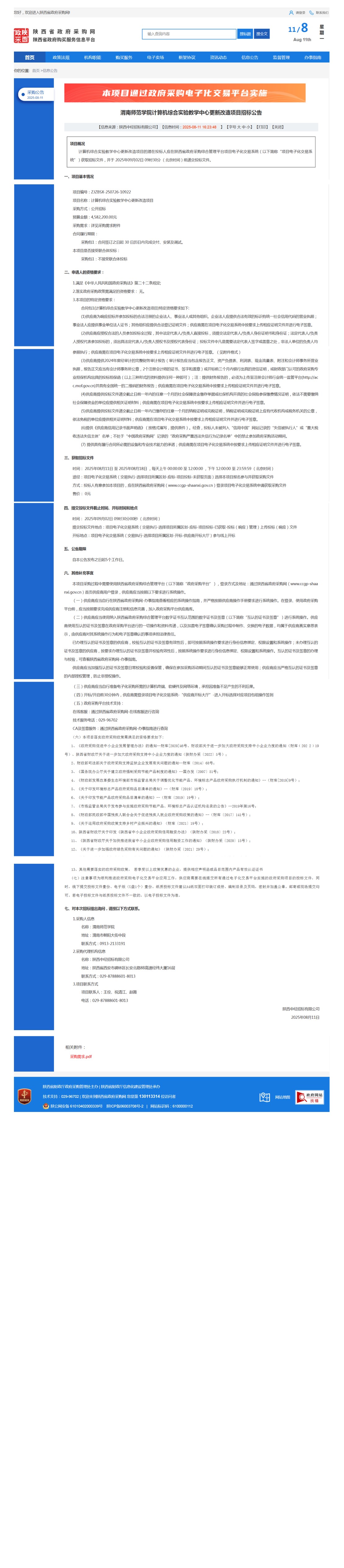 今年会官方网站计算机综合实验教学中心更新改造项目招标公告