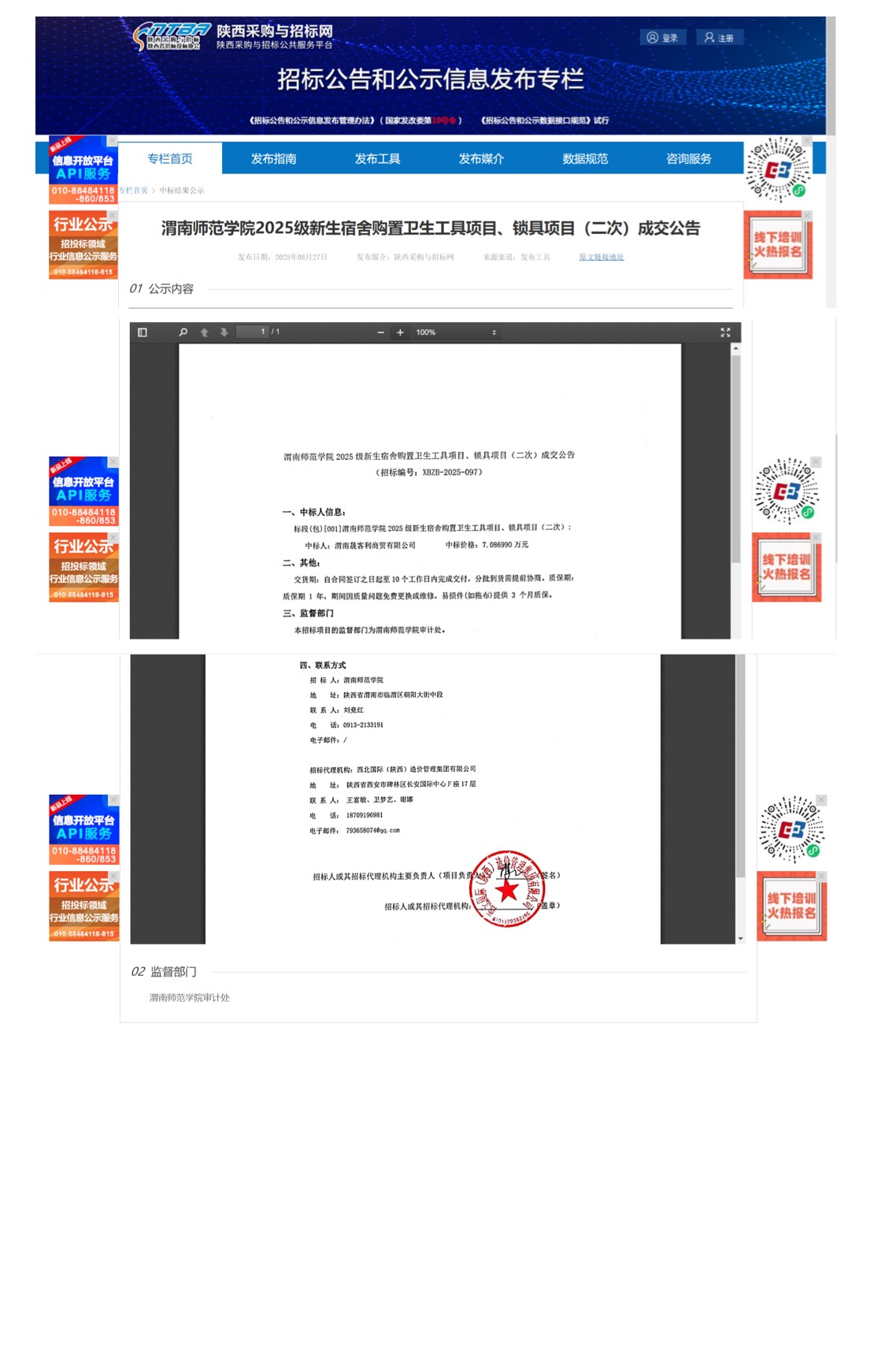 今年会官方网站2025级新生宿舍购置卫生工具项目、锁具项目(二次)成交公告