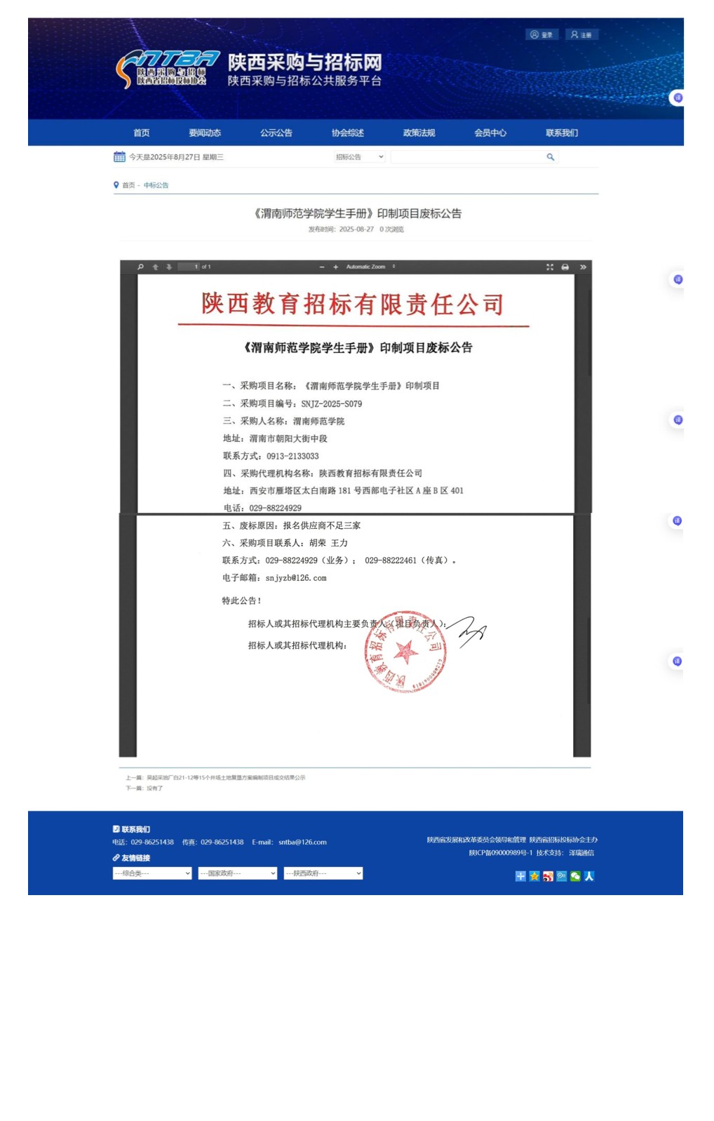 《今年会官方网站学生手册》印制项目(二次) 谈判公告