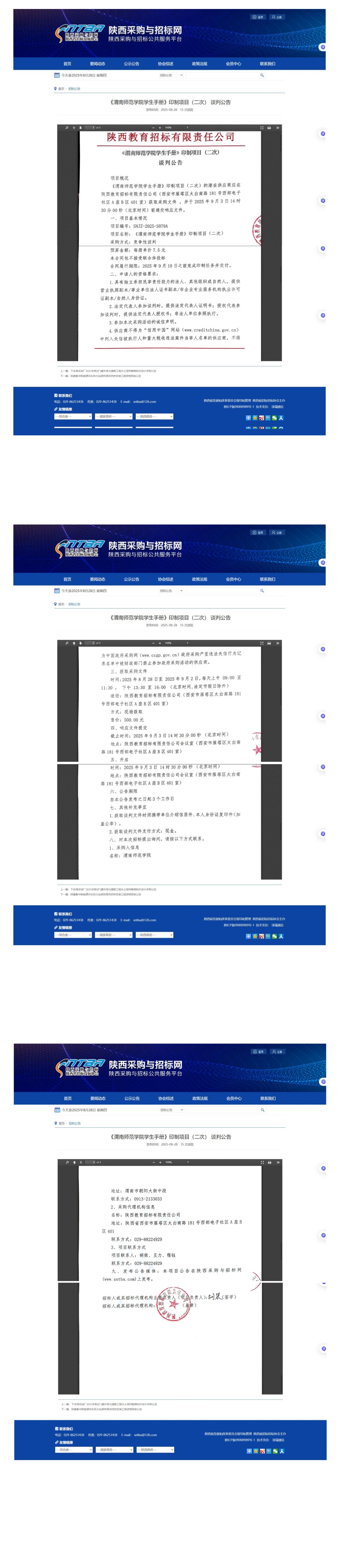 《今年会官方网站学生手册》印制项目(二次) 谈判公告