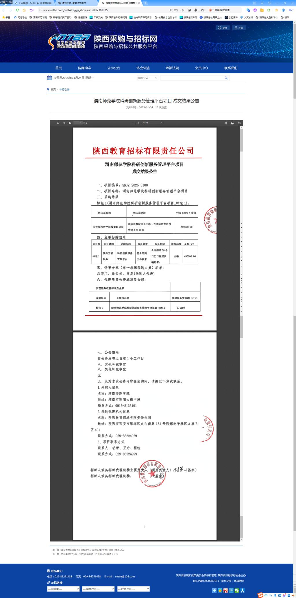 今年会官方网站科研创新服务管理平台项目成交结果公告