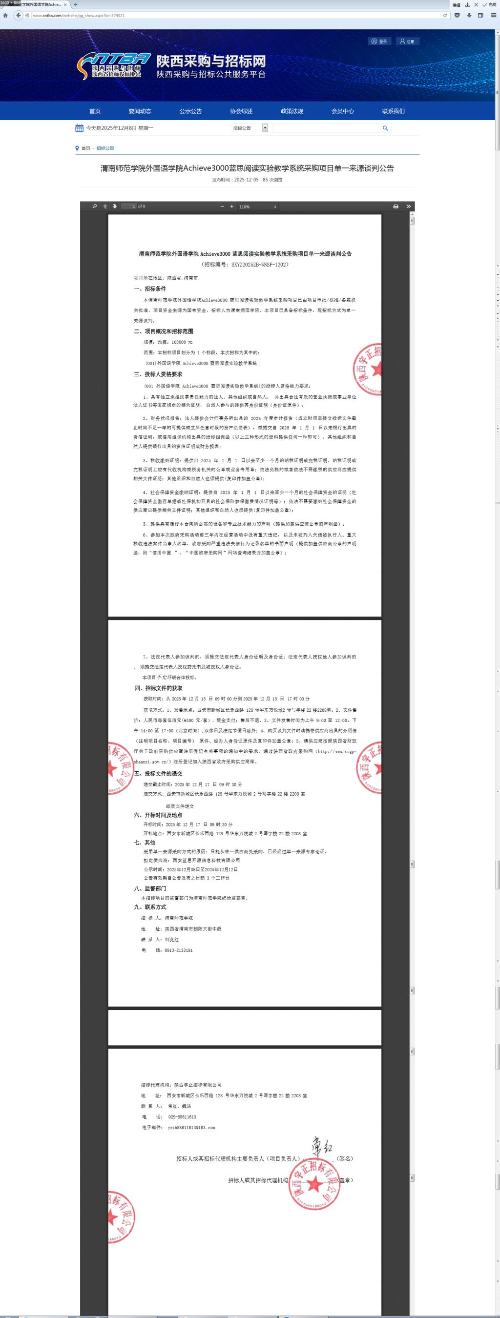 今年会官方网站外国语学院Achieve3000蓝思阅读实验教学系统采购项目单一来源谈判公告