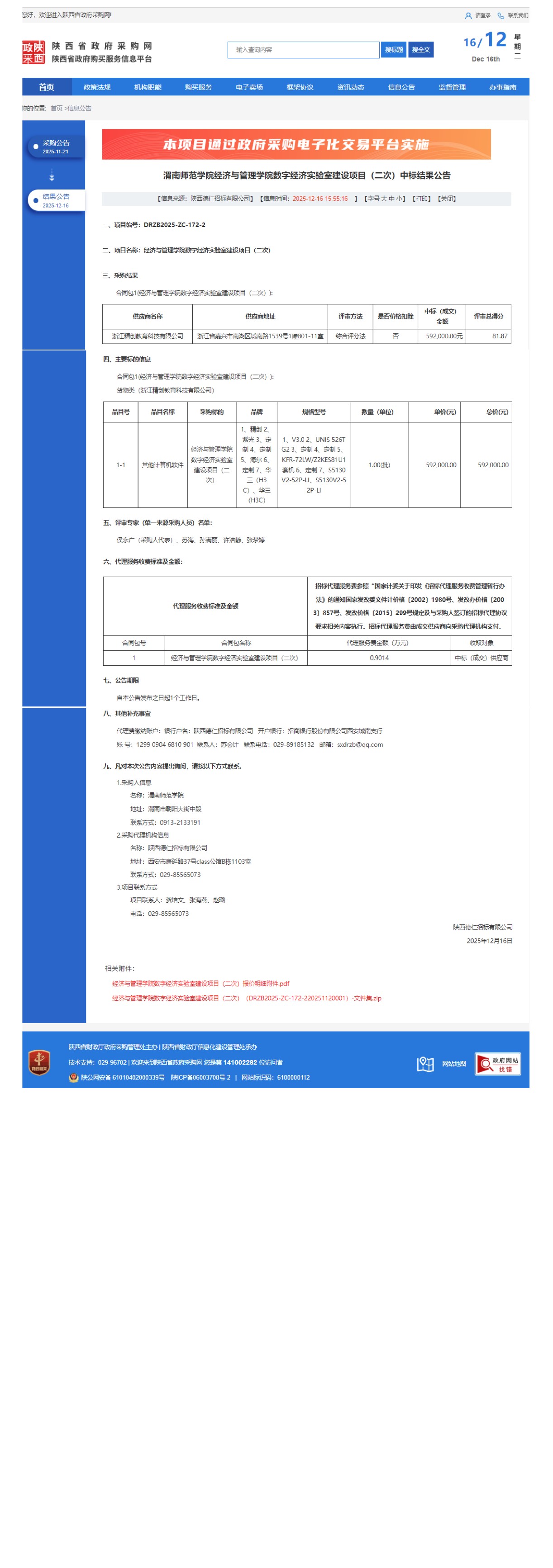 今年会官方网站经济与管理学院数字经济实验室建设项目(二次)中标结果公告
