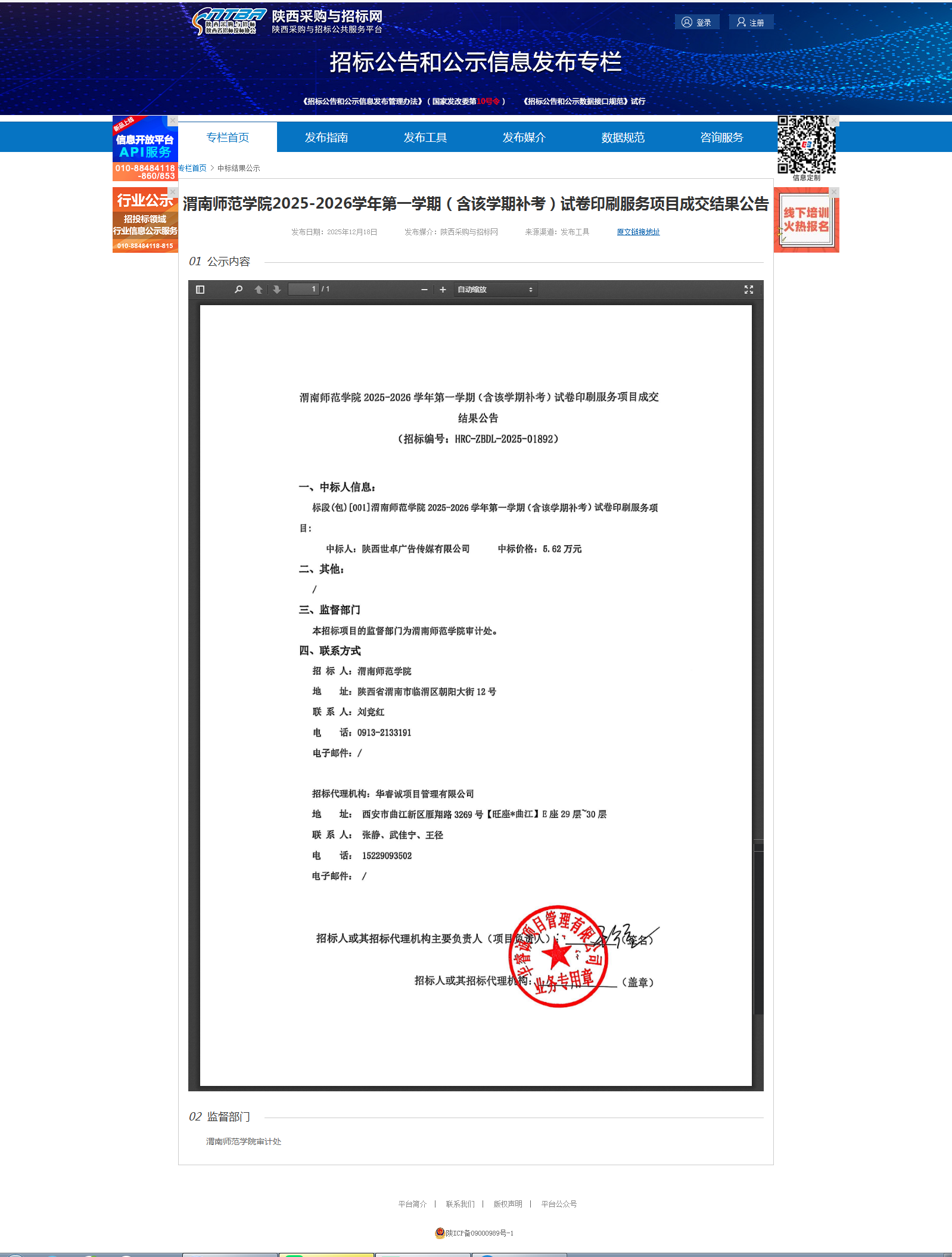 今年会官方网站2025-2026学年第一学期(含该学期补考)试卷印刷服务项目成交结果公告