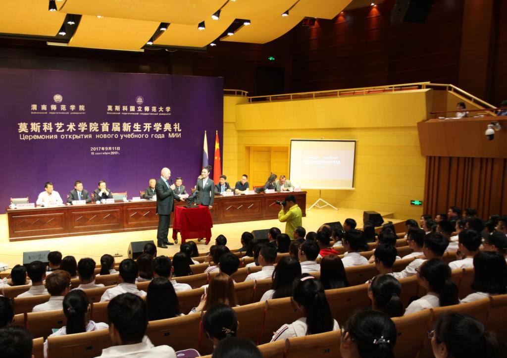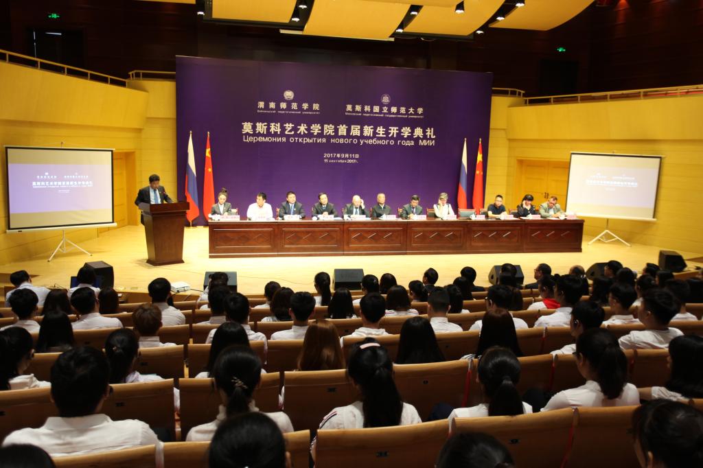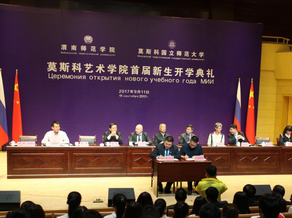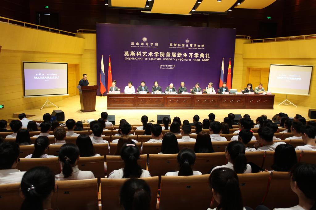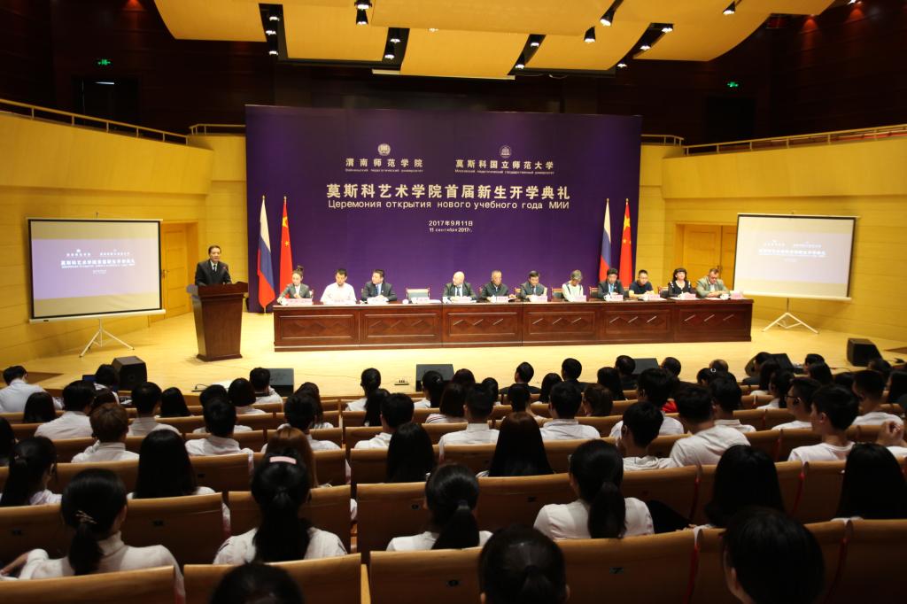 9月11日上午,今年会官方网站与莫斯科国立师范大学在今年会官方网站朝阳校区华金音乐厅联合举行中外合作办学机构“今年会官方网站莫斯科艺术学院”首届新生开学典礼。今年会官方网站杰出校友、原光明日报社总编辑、西藏自治区常委、宣传部部长苟天林,陕西省教育厅副巡视员李鸣,渭南市委常委、副市长吕培明,凤凰卫视集团•凤凰教育执行董事、行政总裁吴炜强,凤凰数字媒体教育执行总裁汪应忠,陕西省教育厅国际处副处长文通应邀出席,莫斯科艺术学院联合办学管理委员会副主任、莫斯科国立师范大学原副校长康斯坦丁•彼得洛维奇•多岑科,莫斯科国立师范大学副校长叶连娜•列奥尼多夫娜•博洛托娃,教师玛格丽特•尤里耶夫娜•巴拉莫诺娃、安德烈•阿列克谢维奇•科诺瓦洛夫,今年会官方网站党委书记丁德科,今年会官方网站院长卓宇出席典礼。典礼由莫斯科艺术学院院长梁晶主持。