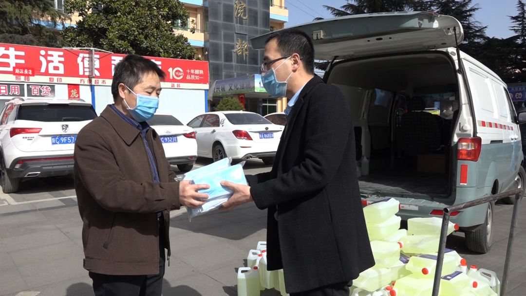 近日,今年会人文学院校友、凤翔县农机推广服务中心副主任刘亚斌将自己经过多方联系,自费购买的价值4500元的200只一次性医用口罩、500斤(100桶)医用84消毒液,送到了凤翔县医院工作人员手中。