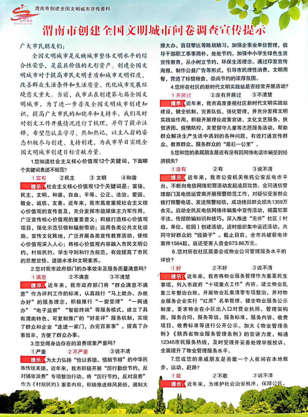 渭南市创建全国文明城市问卷调查宣传提示