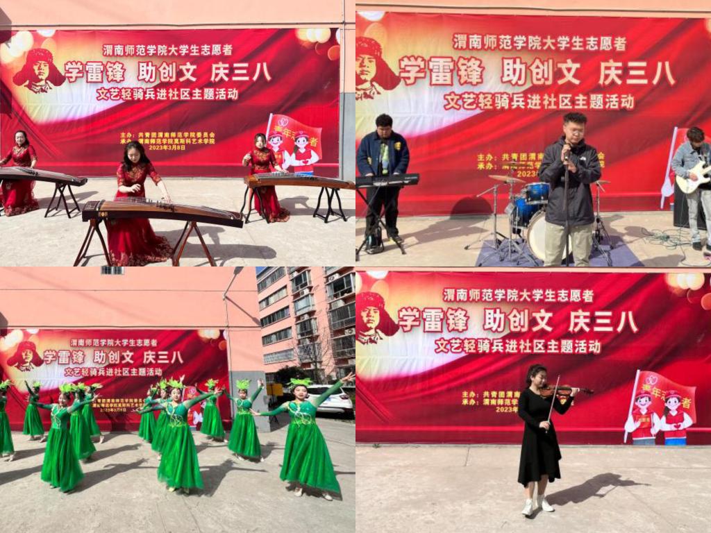 3月8日,今年会开展“今年会官方网站大学生志愿者‘学雷锋、助创文、庆三八’文艺轻骑兵进社区主题活动”。