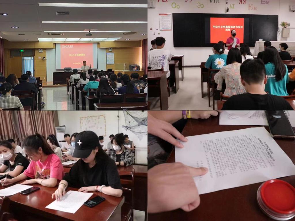 此次活动,提高了毕业生的安全防护意识,提醒同学们充分认识到毕业之际所要承担的责任,在即将奔赴远方之前,学生们认真许下共同维护学校安全和文明离校的承诺,彰显出对母校真挚的情谊。学院的细心关怀,辅导员们的真心祝福,学弟学妹们的依依不舍,确保2022届毕业生快乐、安全、文明离校,祝福2022届毕业生前程似锦、未来可期!(通讯员 高晶 刘晨扬 审核人 石明)